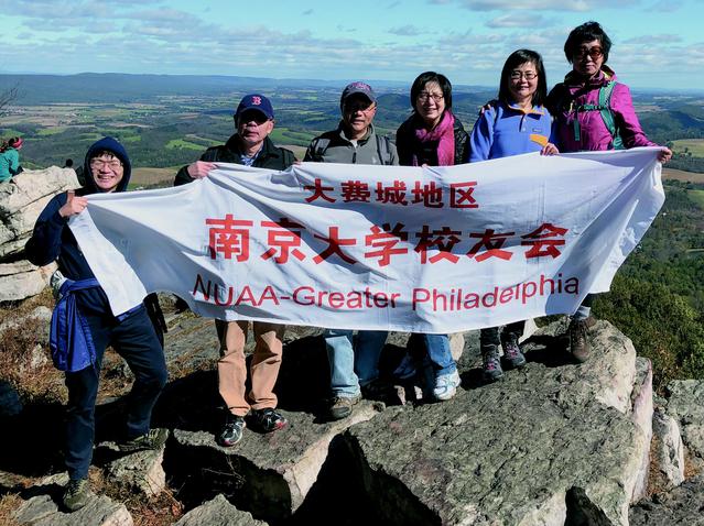 2018年10月21日,美国费城地区南大校友会组织了一次登山活动。十多位校友及家人,包括刚刚5岁的未来校友,欣然参加。登山地点为宾州州立公园Pulpit Rock(砲比特巨石公园)。山高1600多英尺,在1400英尺处有一巨石叫Pulpit Rock,在1600英尺山峰为Pinnacle巨石。全程约18公里山道,校友们分别沿蓝色山道(上坡陡升、较难登)和白色山道(上坡稍缓、路途稍长)攀登。经两个多小时的努力,终于登上峰顶,与南京大学校友会会旗一起达到了新的高度!