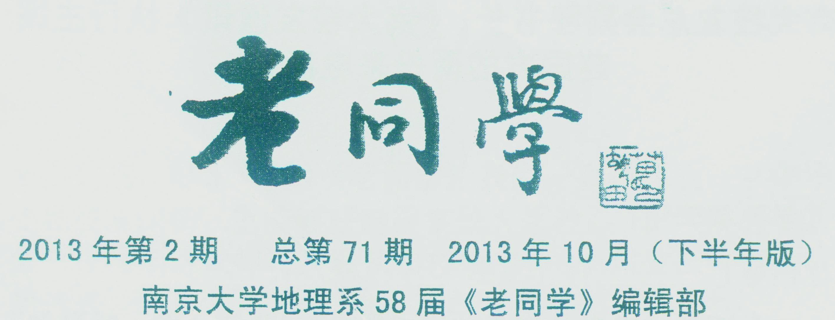 1997年11月杭州举办首次同学聚会,到会同学近50人,这是毕业分配后近40年的第一次同学相聚,大家激动又感叹:想当初少年意气、风华正茂、胸怀大志、报效祖国;可如今两鬓霜白、脸露皱纹、似曾相识又难相认。短短四天的欢聚忆当年谈经历、议人生讲老年,真是无话不谈,有的同学促膝谈心畅谈别后40载直至深夜。没有不散的筵席,当分别来临之时依恋不舍,每个人心中发出一个共同的愿望,盼望今后再聚,并能继续联系彼此沟通。经过倡议讨论决定日后出版一份《通讯》,以联络和沟通彼此,并推选出以杭州金庆明、北京赵令勋和高维明、南京洪昌仕、徐桂卿五人组成编委。出版地先后从杭州转至北京最后定在南京。这本《通讯》就是《老同学》刊物的前身。后经筛选讨论正式命名为《老同学》并定期出版,又请海洋二所书法家苗育田先生为刊名书写“老同学”3字。“老同学”作刊名,符合实情,贴切实际,反映的是真情实感,40多年的风风雨雨路遥途漫、经历、岗位、机遇各不相同,但相处不变的关系是老同学,同学间没有隶属关系,不分职称职銜高低,有的只是融融的同窗情。其他华丽和诗韵的刊名都无此贴体。《老同学》是同学们自己创建自己出版的刊物,为全体同学服务,她成为大家发表意见的讲台、互通信息的桥梁、感情交流的场所。《老同学》催生与筹划了多次聚会,为2000年北京聚会、2002年百年校庆、2005年无锡聚会、2008年青岛聚会和2012年校庆110周年等诸多聚会及其他小范围的多次相聚发挥了宣传与组织策划作用。《老同学》有一个非常特殊又意想不到的功能,就是发动大家查寻到数十年一直无讯息的老同学五人,使老同学大家庭更为壮大。《老同学》为母校100周年110周年校庆、为潘菽老校长塑像落成等大型活动进行详实报导,为母系任美锷院士、杨怀仁、张同铸、宋家泰等老教授逝世追悼会均给予现场描述。同学们对各位师长逝世纷纷发表悼念文章,对他们在各学科贡献和高尚人品予以颂扬。《老同学》刊物薄薄通讯厚厚情意、连着大家系着众人,她得到同学们的厚爱与关怀,使之茁壮成长、越办越好,真正成为聚会后不落幕的再相逢。大家盼着她想着她,成为同学联系畅通的鸿雁,成了慰籍心灵的声音。该刊物不仅寄给五八届同学们而且赠送给《南大校友通讯》和南大北京校友会会刊,有多篇文章被分别转载。有的还慕名索要而赠送给师兄和师弟们。《老同学》是在同学会的领导下编委中有一人为执行主编,负责约稿、审稿、排版出版、邮寄等项工作,分片都有通讯联络员。所需各项费用,均由同学们自愿乐助,也有校友赞助及辅以课题资助,并有专人负责各项财务收支,每年在期刊中公布。