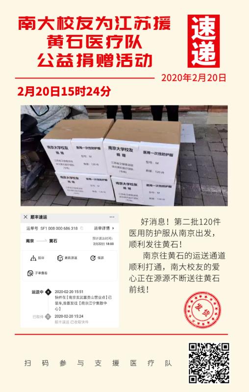 南大南通校友会连日来,继续发动校友捐资献物,支持江苏援黄石医疗队,共克时艰,战胜疫情。