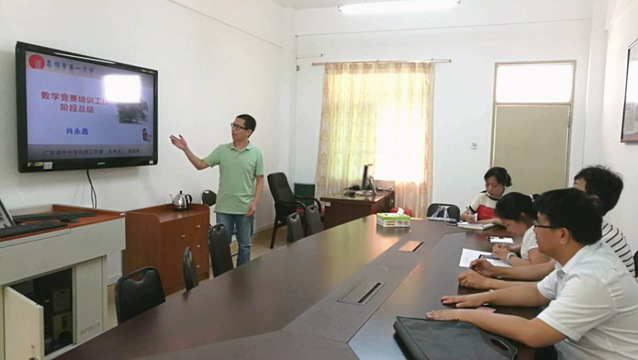 2002级数学系肖永昌校友(左一)在做数学竞赛培训。