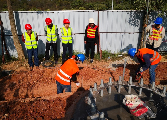 2004级地理学院王东校友(左一)在5G项目施工现场。