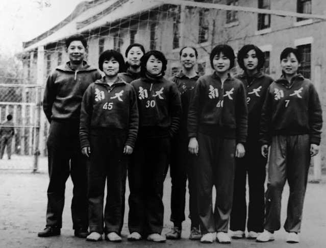 那时训练球场在校园(现鼓楼校区)的东北侧,原外文系教学楼群的旁边,有几片用铁丝网围住的露天三合土场地。每天下午第二节课后,我们来到球场训练,从体能到技术,有个人的单项小灶,有集体的配合。那时的教练:王敏生,儒雅随和中又带着一丝绝不含糊的严厉;陈加德,幽默风趣,和蔼可亲;朱唯唯,既是教练又兼摄影,后来的后来,还近水楼台,抱得美人归;后期还有高大帅气的许健教练。男排的马庆贺教练以及队员有时也来指导和陪练。因为热爱,大家训练都很自觉,我们好像没有魔鬼式地狱般训练的桥段。