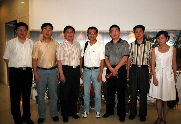 6月22日,知名校友夏志宏(中)教授访问母校,受到党委副书记、校友总会副会长闵铁军(左三),党办主任任利剑(右三)等领导的亲切接待,《扬子晚报》社陈太云校友(左二)等参加了会见。