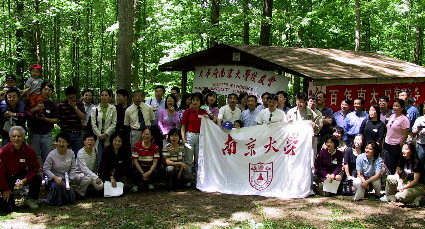 五月十一日,风和日丽,春暖花开,气候宜人。在华盛顿市郊风景秀丽、树影婆娑的Cabin John 地区公园,大华府地区的校友们聚在一起,畅叙母校情怀,欢庆母校百年华诞。理事们早早就来到公园,布置会场。校友会的会旗和南大的校旗交相辉映,一幅上书“百年南大 四海芳华”和嵌有南大百年校庆图标的大红横幅格外醒目。中午时分,校友们向会场汇集,与会资格最老的校友是1947年就读金陵大学的李永康学长和他的夫人、1950年入学南大的吴善祥学长。