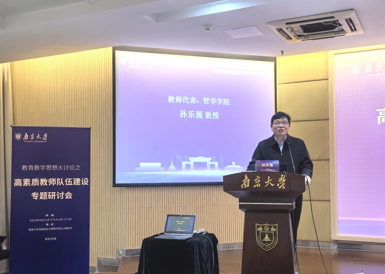 教师代表、南京大学哲学学院孙乐强教授以《青年教师的自我修养》为题,指出青年教师要从四方面着手做好职业发展规划,一是要在教学方面下功夫,做好立德树人、教书育人的本职工作,利用国家、学校搭建的各种课程建设、教材建设、竞赛平台,不断提升教学能力;二是不断提升科研竞争力,将科研实力转化成教学优势,稳步前行;三是做好社会服务工作,为学校、社会乃至国家发展贡献力量;四是要在师德师风、学术不端等方面守住底线,严于律己,做到踏实勤恳,德才兼备。