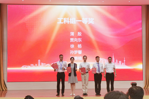 张明代表参赛选手在颁奖大会上发言。他说“教学呼唤科研、科研反哺教学,两者相辅相成。自己在教学上付出的时间与精力,非但没有影响科研工作,反而对科研产生了巨大的推动作用。非常感谢青教赛这个平台,自己得到了锻炼、增长了见识、交流了心得、获得了提升。”“四个月的备赛过程紧张而充实,感谢校工会、教师教学发展中心、本科生院、学院领导和老师们的悉心指导和暖心关怀,站在新的起点,我将继续砥砺前行!”