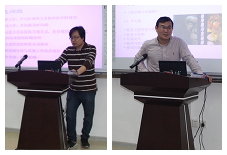 随后,刘钦老师作为软件学院导学慕课《程序猿与攻城狮》的课程负责人和主讲老师之一,分享了另一种风格的导学慕课制作模式。该门课程由五位青年教师担纲主讲,根据各自风格选择多种视频呈现形式,或以老师讲解为主,或纯动画视图加老师影音讲解,从各自研究领域选择主题,以软件工程的历史和软件工程师的解密开始,到人机交互、移动互联网等热门话题,迅速调动学生对软件工程的学习兴趣。课程上线后,主要由刘钦老师负责维护,因学生众多,测评方式以客观题为主,辅以讨论区交流。考虑到软件工程是应用科学,以编程为主,刘钦老师正着手二次开发,搭建外接平台,让学生有机会动手进行编程。