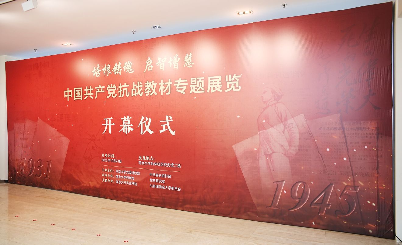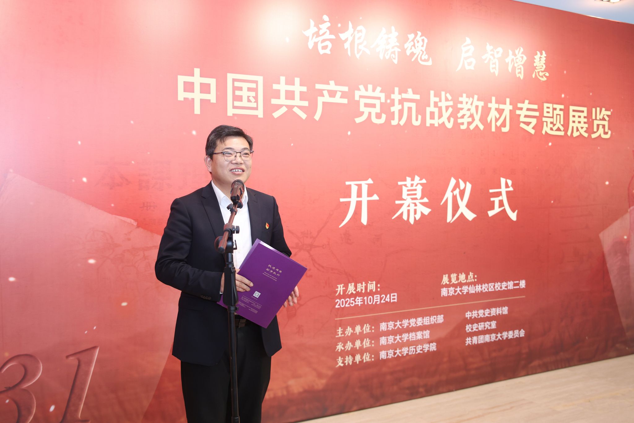 10月24日,“培根铸魂 启智增慧——中国共产党抗战教材专题展览”在南京大学仙林校区校史馆拉开帷幕。展览由南京大学党委组织部、南京大学中共党史资料馆主办,档案馆、校史研究室承办。校党委常委、党委组织部部长孙乐强出席活动并讲话。
