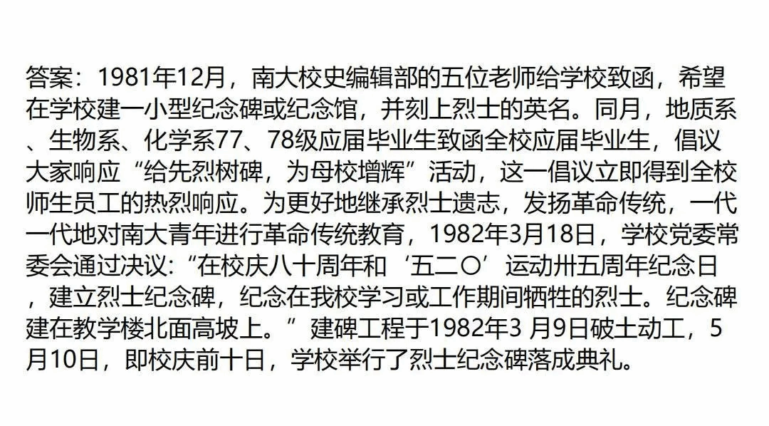 今天是清明节,让我们从鼓楼校区的一座纪念碑开始,回眸校史,祭奠慷慨赴难、英勇献身的先烈们,感悟南大师生一个多世纪以来“爱党、爱国、爱南大”的光荣传统和家国情怀。