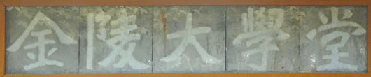 金陵大学的校牌一石一字,由五块石材组成,内似填金色漆。