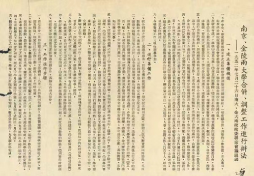 金陵大学堂成立于1910年,它的源头可以追溯到1888年创办的汇文书院。1951年,金陵大学由政府接办,又与金陵女子文理学院合并,改为公立金陵大学。1952年全国院系调整时,南京大学的工、农、师范等学院及相关系科独立,同时并入金陵大学的文、理学院,仍名南京大学。