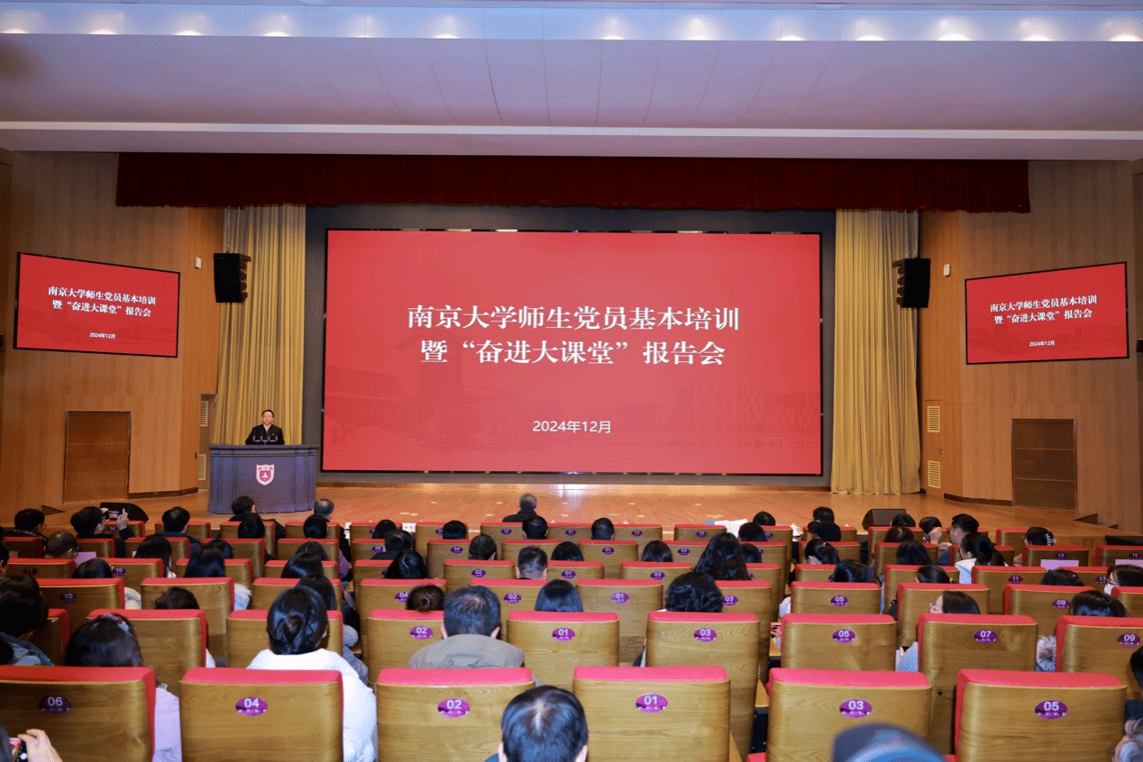 为深入学习习近平总书记在全国教育大会上的重要讲话精神,引导全校师生党员准确理解把握教育强国建设的战略任务和重大举措,12月25日下午,南京大学举办全校师生党员基本培训2024年秋季学期第二次集中培训暨“奋进大课堂”第四场报告会。全校师生党员集中学习教育部党组书记、部长怀进鹏同志主讲的“深入学习贯彻全国教育大会精神 挺膺担当 为教育强国建设贡献力量”视频课程。南京大学党委书记、中国科学院院士谭铁牛主持培训并讲话。档案馆党支部全体党员在仙林校区主会场、鼓楼校区分会场参加培训。无法到校参训的党员通过线上课堂同步观看视频课程参训。