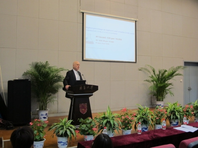 After this meeting, the ambassador delivered a speech titled “Israel: An Innovative Country” at the Auditorium of Nanjing University Youth Hall and then had a discussion with students on such topics as the nurturing of innovation and China-Israel relations.