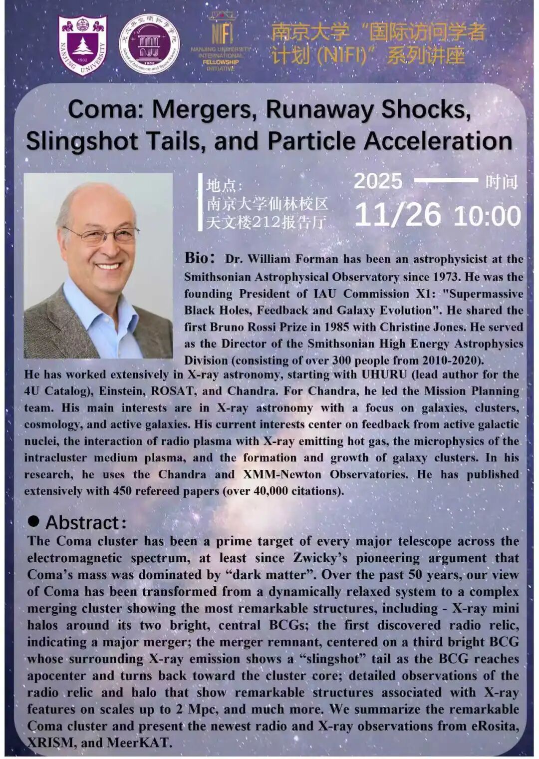 Location: Room 212, School of Astronomy and Space Science, Xianlin Campus