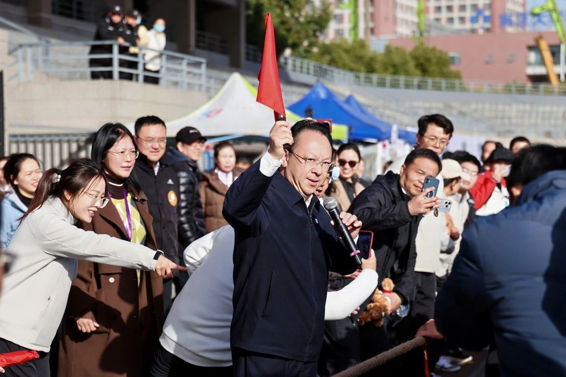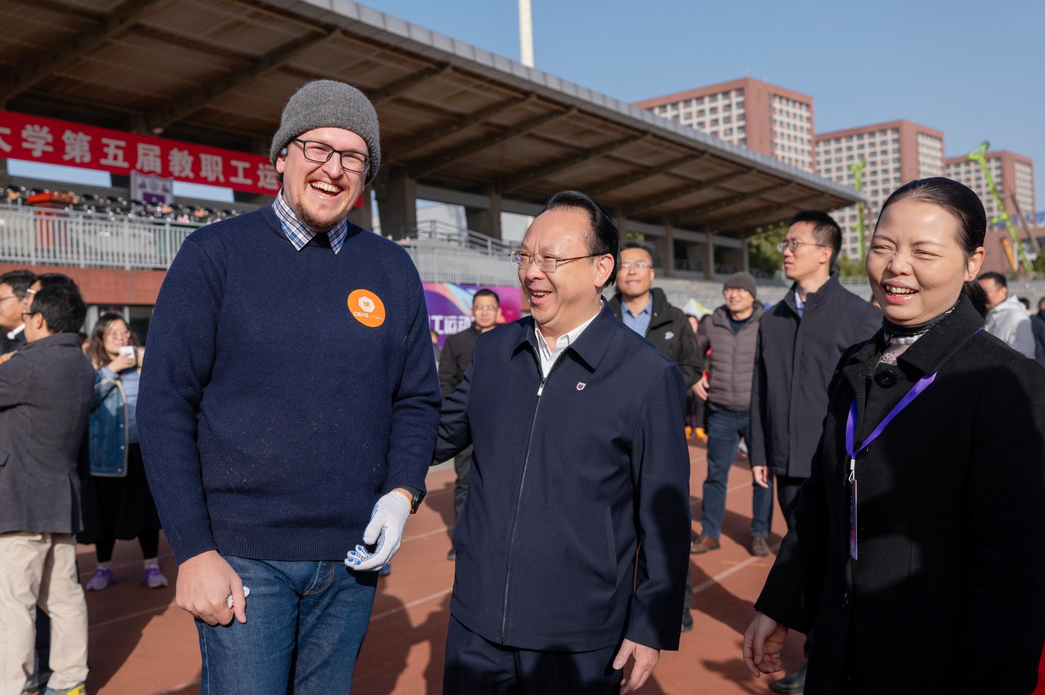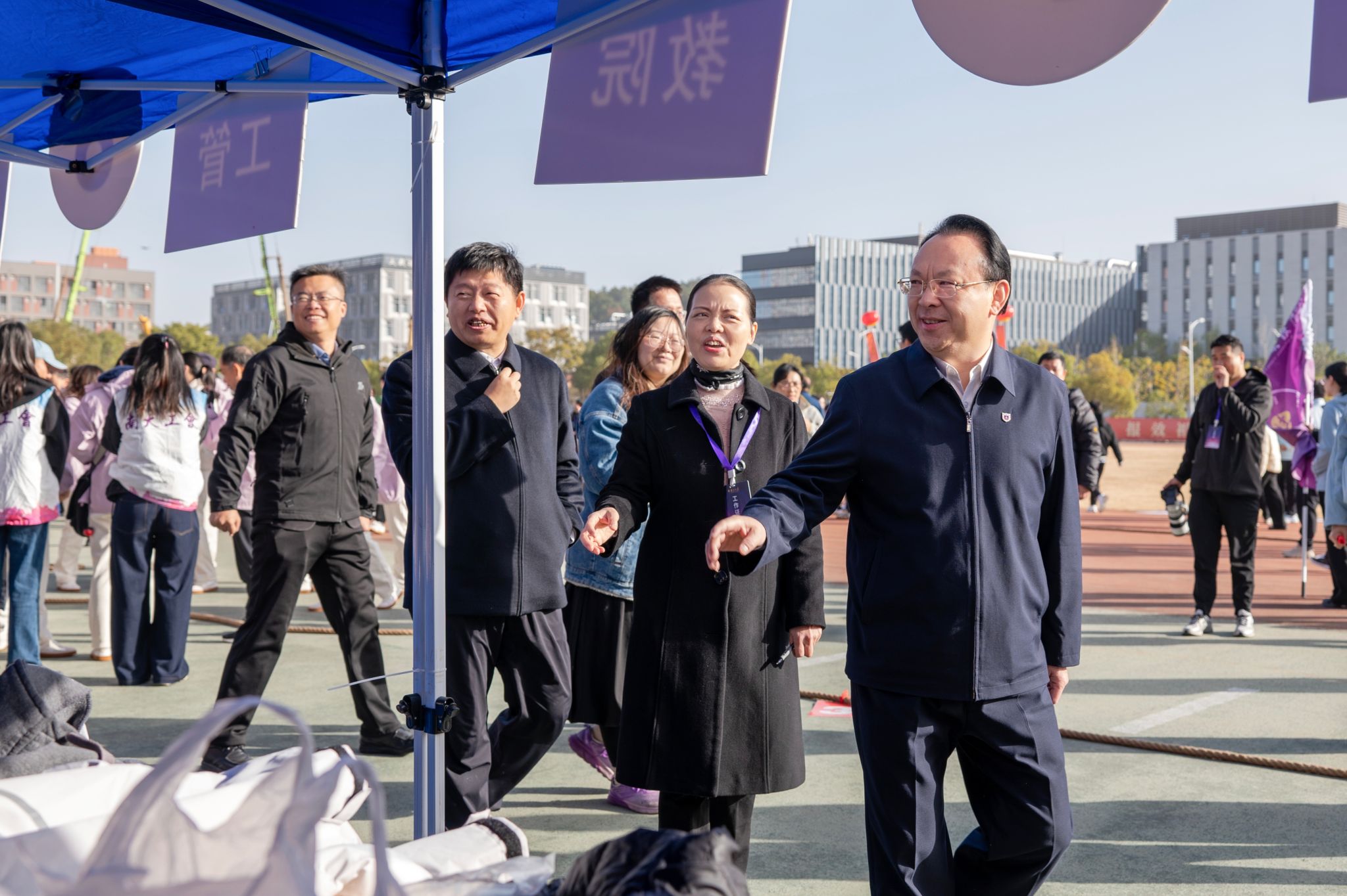 On November 28, the Fifth Faculty and Staff Sports Day of Nanjing University was held on Xianlin Campus. Over 1,000 faculty and staff members from 36 sub-unions gathered at the venue to compete in skills and showcase their talents. Tan Tieniu, Chair of NJU CPC Counciland Academician of the Chinese Academy of Sciences, attended the event.