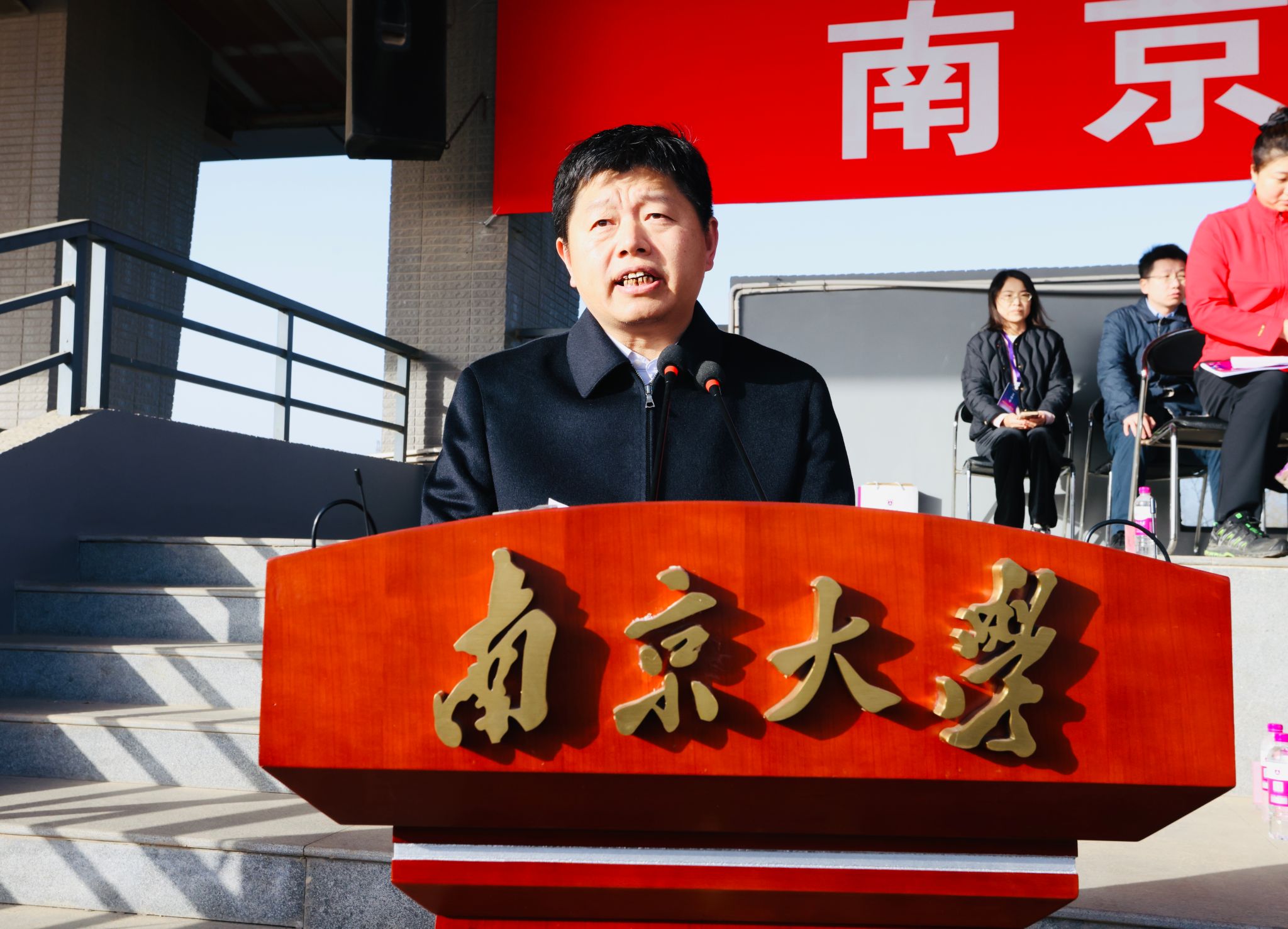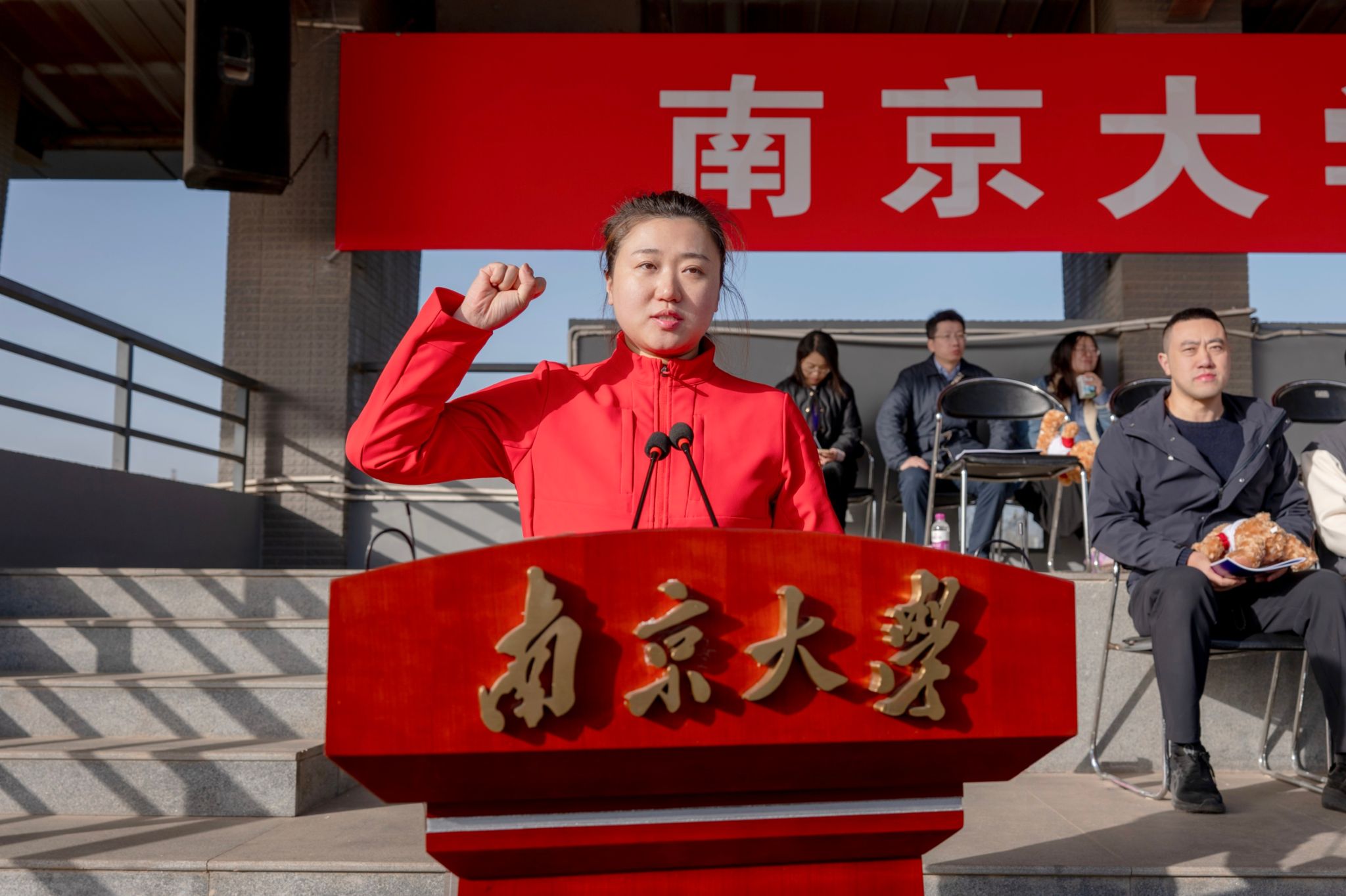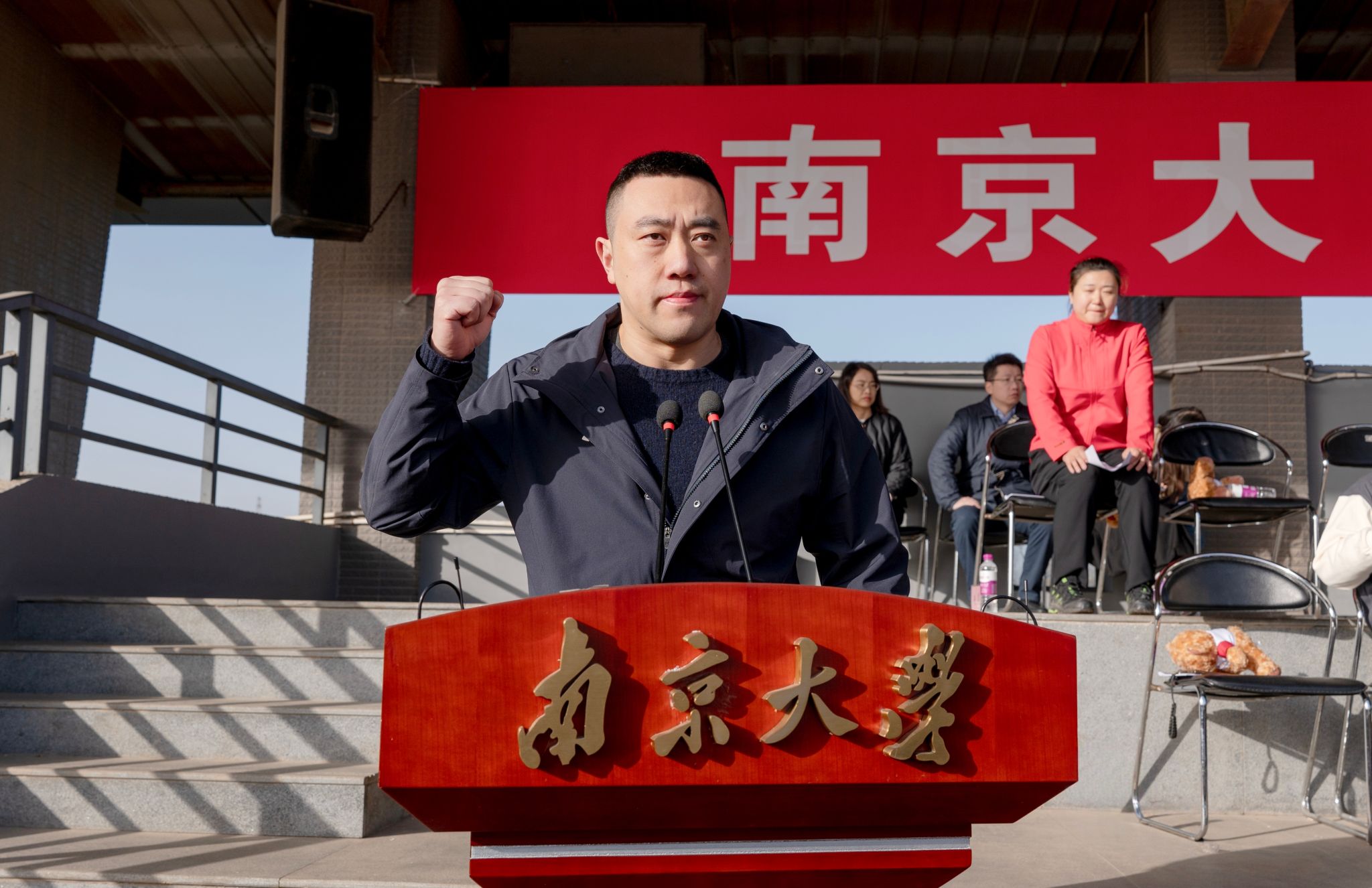 At the opening ceremony, NJU Vice President Lu Xiancai, delivered a speech. Sun Leqiang, Director of NJU Organization Department, as well as heads of relevant departments and colleges, attended the event. The opening ceremony was hosted by Tang Shaoqiu, Chairperson of NJU Labor Union. Professor Liang Bin from the School of Physics and teacher Zhao Lan from the Sports Department took the oath as athlete representative and referee representative, respectively.