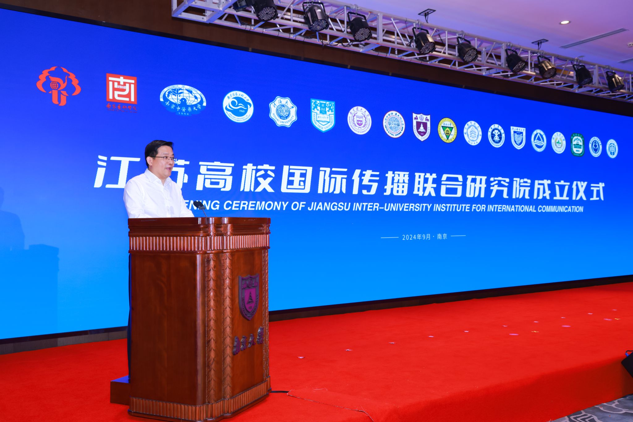 During the Ceremony, leaders representing NJU and the other 17 member universities and colleges collectively inaugurated the Jiangsu Inter-University Institute for International Communication.