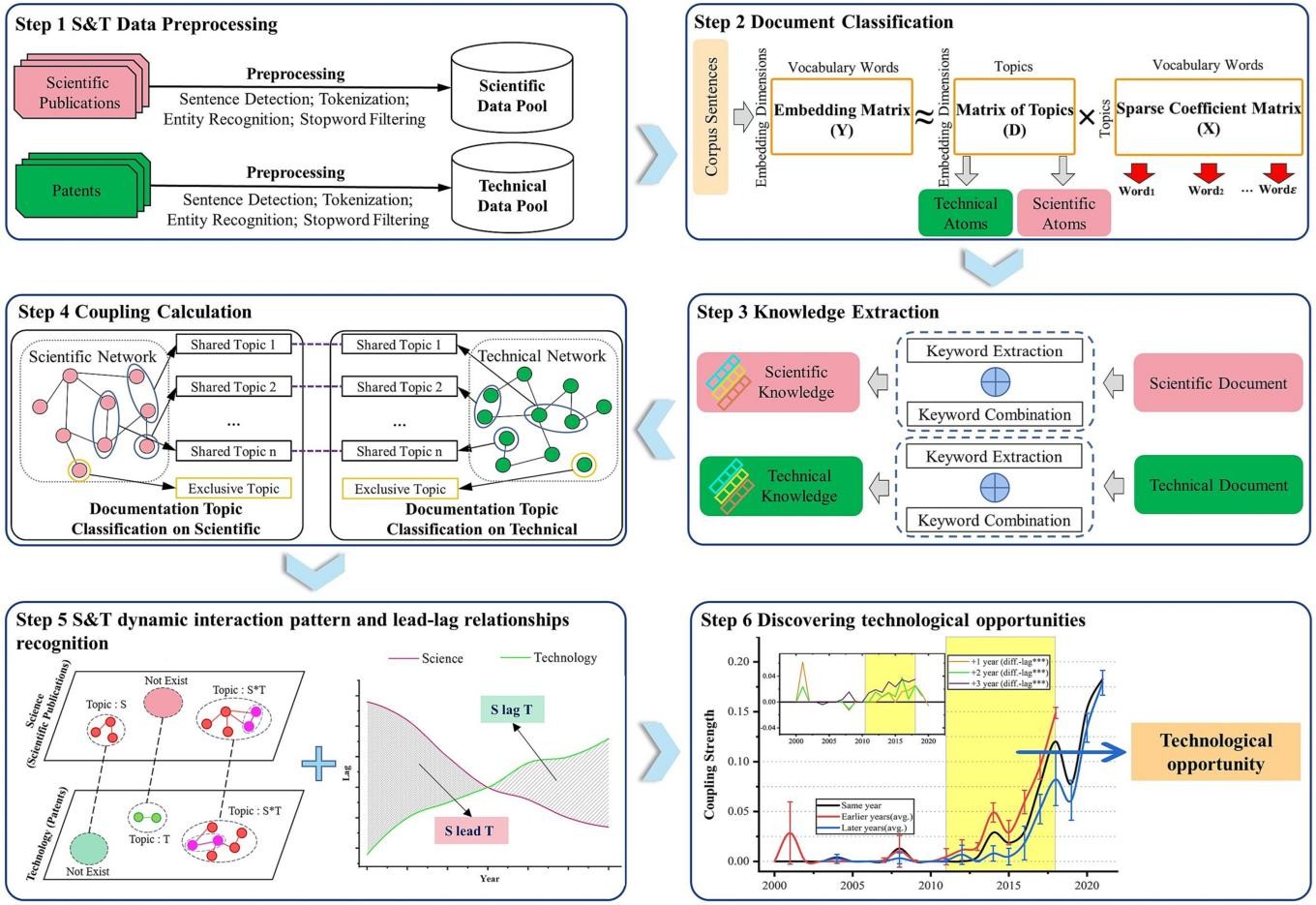 Research framework for identifying technological opportunities through S&T dynamic interaction and lead-lag relationships.