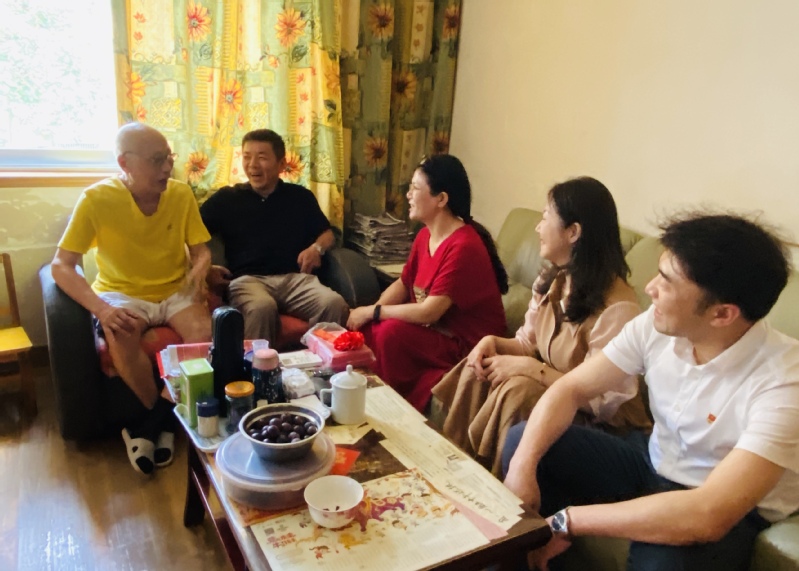 “最近身体情况怎么样?生活中有没有困难?”卞建波一行与姚吉法亲切交谈,详细询问他的生活情况和健康状况,介绍南京大学和工会的发展状况,感谢他为学校发展作出的贡献,并希望他继续保持积极心态面对生活。