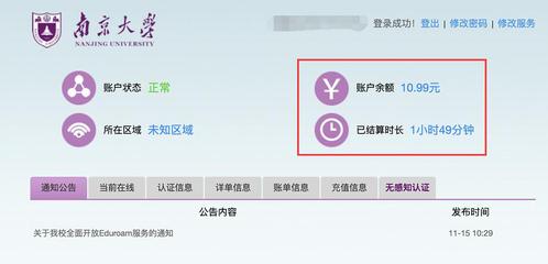 您登录p.nju.edu.cn看到的“账户余额”并未包含当前在线的时长费用;“已结算时长”也不包含当前在线的时长。