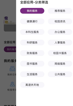 2、“服务”页面快速导航栏,帮助用户快速定位所需服务: