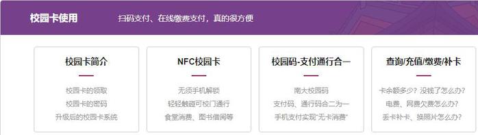 返回首页-> “校园卡使用”,点击子标题,可看详情介绍及相关FAQ: