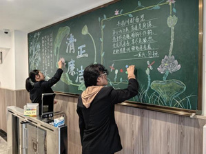 板报创作环节将现场气氛推向高潮。学生与工作人员分组协作,围绕内容构思、版面规划、色彩运用与艺术呈现四个环节,各展所长、默契配合。大家执笔绘就清廉底色,以画卷传递时代清风。方寸板报间,字字千钧彰显正气,帧帧画卷浸润初心。最终完成的板报作品主题鲜明、意蕴悠长,既有历史廉吏的清风傲骨,也有传统意象的时代新解,融思想深度、艺术美感与教育价值于一体,成为学生公寓中一道亮丽的廉洁文化风景。