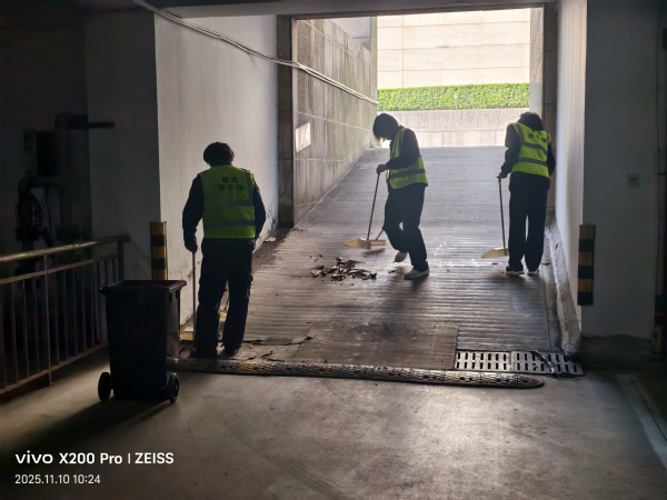 实践阶段,在工作人员的指导下,同学们开始停车场实地巡检。他们沿着停车场车道、停车位等重点区域认真排查,仔细检查车辆停放是否规范、消防设施是否完好、标识标线是否清晰,及时提醒车主纠正压线停放、占用通道等问题。随后,同学们手持清洁工具,分工协作,细致清理停车场内的落叶、杂物,确保覆盖每一个卫生死角。清扫后的停车场焕然一新,整洁有序。