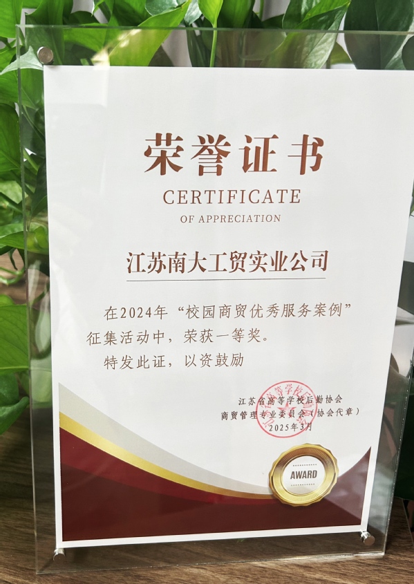 3月14日至15日,江苏省高等学校后勤协会商贸管理专业委员会2024年年会在扬州召开。在此次年会上,江苏南大工贸实业公司的服务案例《南京大学“南大记忆文创优品集合店”——结合校园更新打造高校文创产品营销新场景》,荣获“全省高校校园商贸优秀服务案例”一等奖,并作为获奖单位代表进行了交流发言。