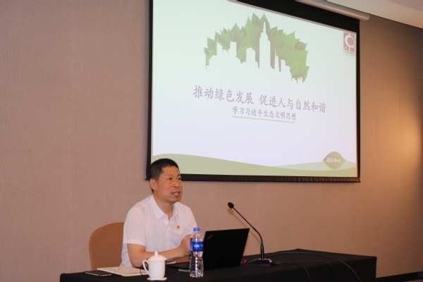 6月16日,后勤服务集团党委委员、副总经理张庆峰在南大国际会议中心讲授了题为《推动绿色发展,促进人与自然和谐——学习习近平生态文明思想》的主题教育专题党课,绿化环卫管理中心与工贸公司党支部全体党员、发展对象、积极分子以及绿化环卫管理中心、工贸公司、国际会议中心经理及以上管理人参加了此次党课。党课由绿化环卫管理中心与工贸公司党支部书记黄明主持。
