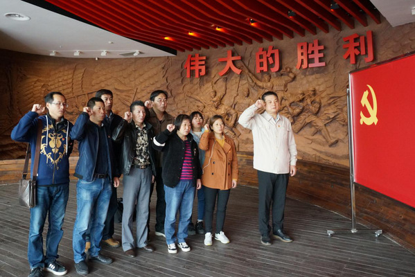 10月29日,“我志愿加入中国共产党,拥护党的纲领,遵守党的章程……”当后勤服务集团党委委员高风华带领全体党员将拳头举过耳畔,当熟悉的入党誓词响彻南京渡江胜利纪念馆前,党员们再次缅怀前辈不忘历史。