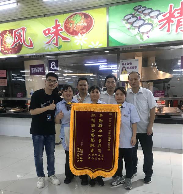 6月22日晚餐时段,一位2022级硕士毕业生手捧锦旗走过人群,将它郑重地送到了仙林校区学生第十食堂维扬窗口的阿姨们手中,这一暖心举动吸引了现场师生的目光。