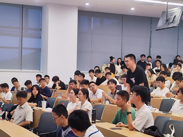 在互动环节,现场师生们踊跃提问,包云岗教授耐心解答,从开源商业模式到验证方法、再到AI算力生态的构建都分别进行了详细的回应,现场交流氛围热烈。