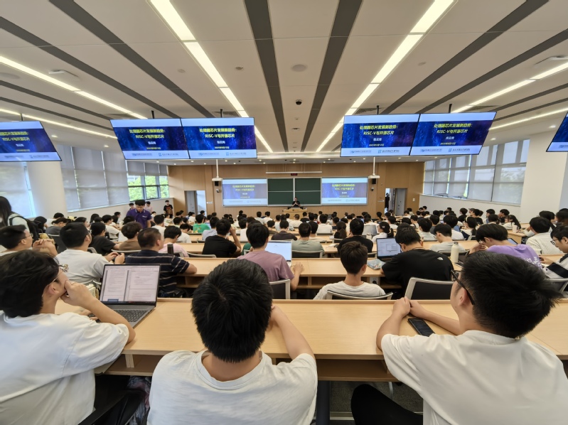 副院长杜力、助理教授田静以及学院近200名师生参加专题讲座,现场座无虚席。此次讲座让同学们深入了解了RISC-V与开源芯片的发展现状与未来趋势,不仅开阔了视野,也增强了投身芯片产业发展的使命感与责任感。未来,集成电路学院将继续邀请业界专家学者走进校园,帮助同学们夯实专业基础,探索学术前沿,拓展产业视野,努力为国家集成电路事业发展培养拔尖创新人才。