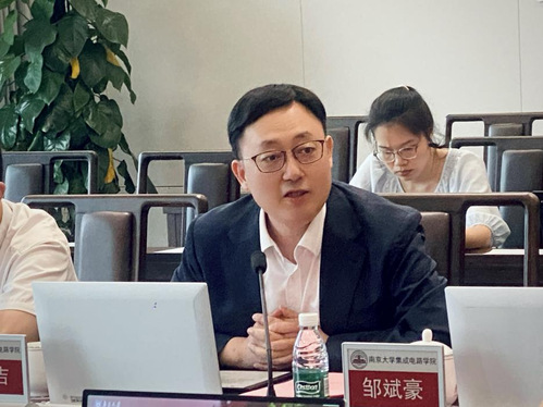 中国学位与研究生教育学会副秘书长赵瑜、大赛与合作部主任张雯、高级主管王瑶等主办方代表,清华大学教授、创芯大赛创始人周祖成,中国科学院大学教授周玉梅,西安电子科技大学教授张玉明,上海交通大学教授贺光辉等组委会嘉宾;北京大学教授、专委会主任委员盖伟新,浙江大学教授、专委会副主任委员韩雁,华为战略研究院竞赛管理部顾问叶国华;以及承办方南京大学集成电路学院党委书记、执行院长王欣然、党委副书记施国卿、副院长杜力,南京大学电子科学与工程学院院长刘斌、党委副书记孔令红等领导和嘉宾通过线上线下的方式围绕赛事组织、评审细则、后勤保障、人才招聘等关键环节展开深入研讨。