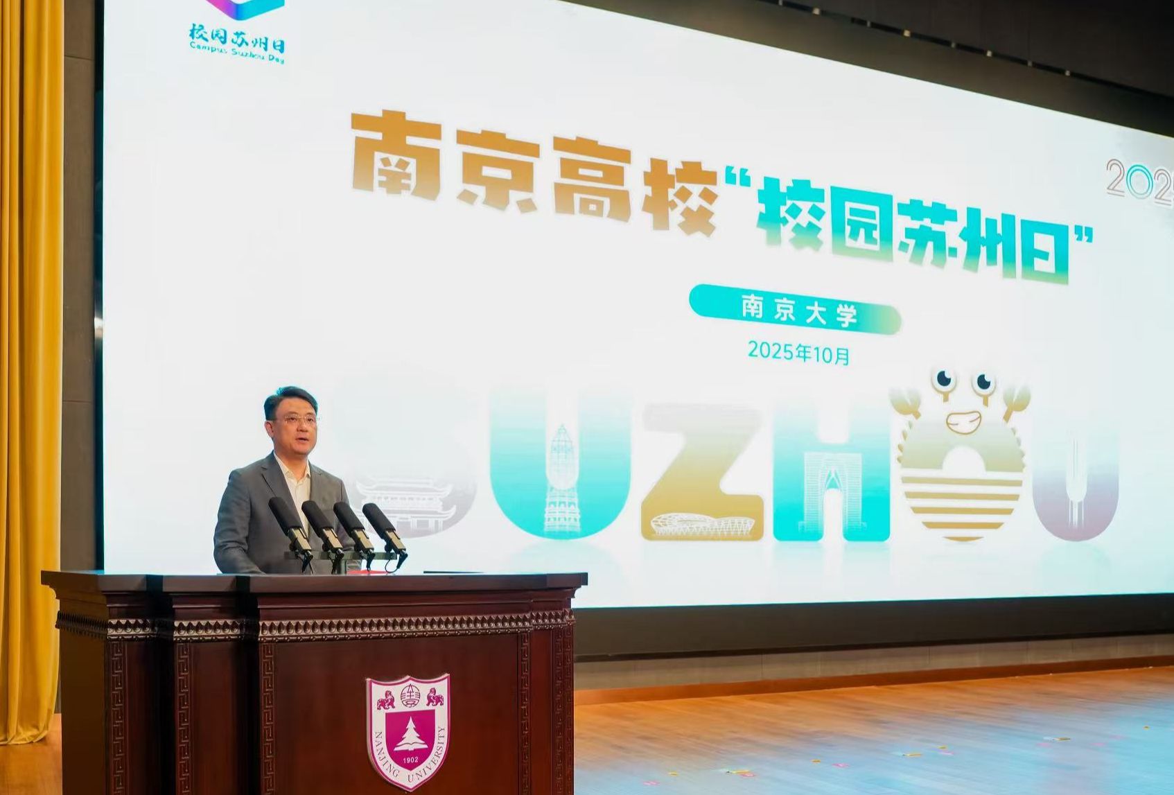 10月29日下午,2025 年“校园苏州日”秋招暨南京高校专场活动在开云足球俱乐部举行。苏州市人民政府副市长施嘉泓,开云足球俱乐部党委常委、副校长索文斌出席活动并致辞。