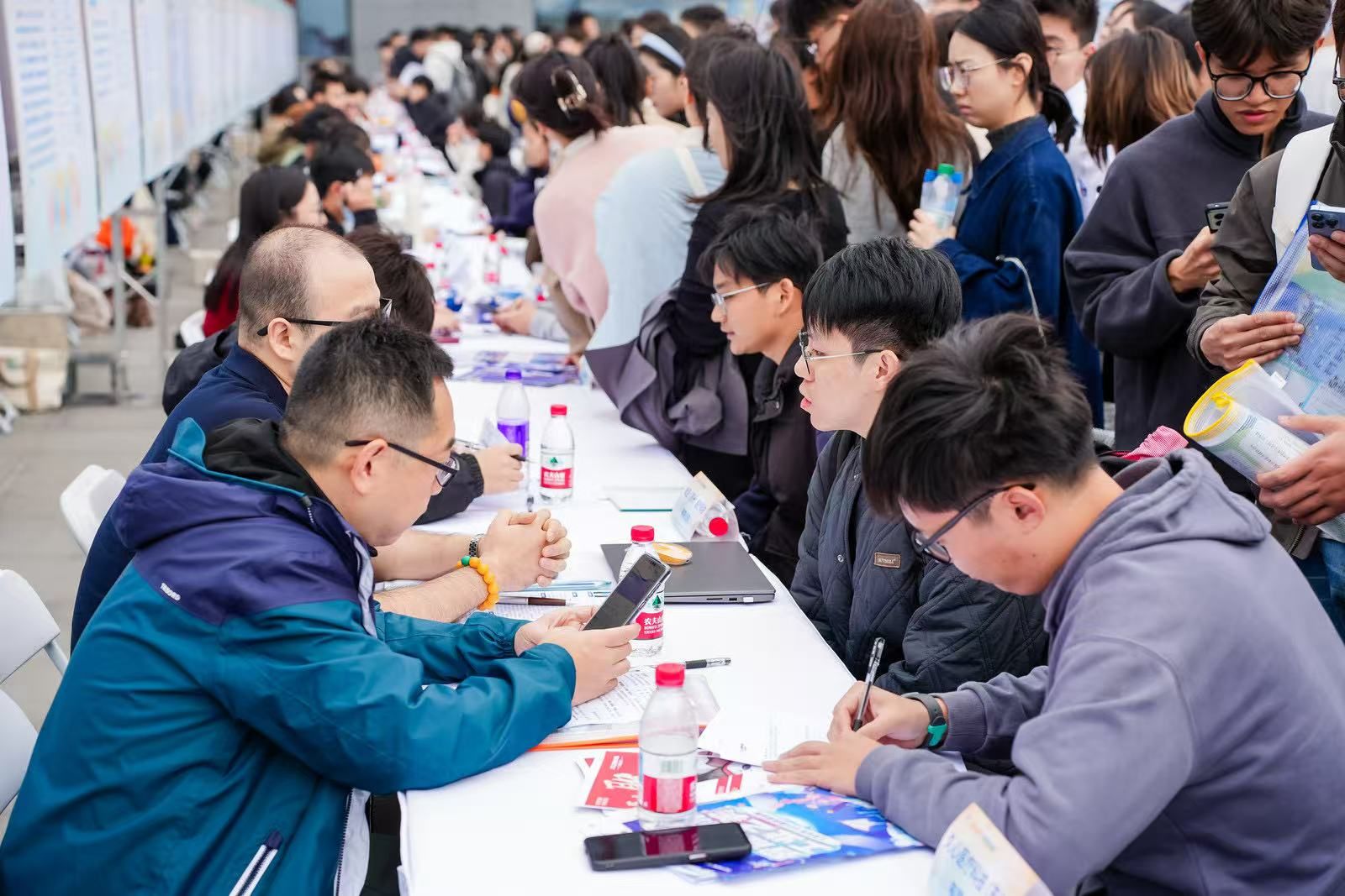 会后,现场举行了招聘对接和青春市集体验活动。苏州国家实验室和施耐德电气等140余家重点用人单位提供了近4000个优质岗位。同学们踊跃投递简历,与用人单位深入交流,现场气氛热烈。