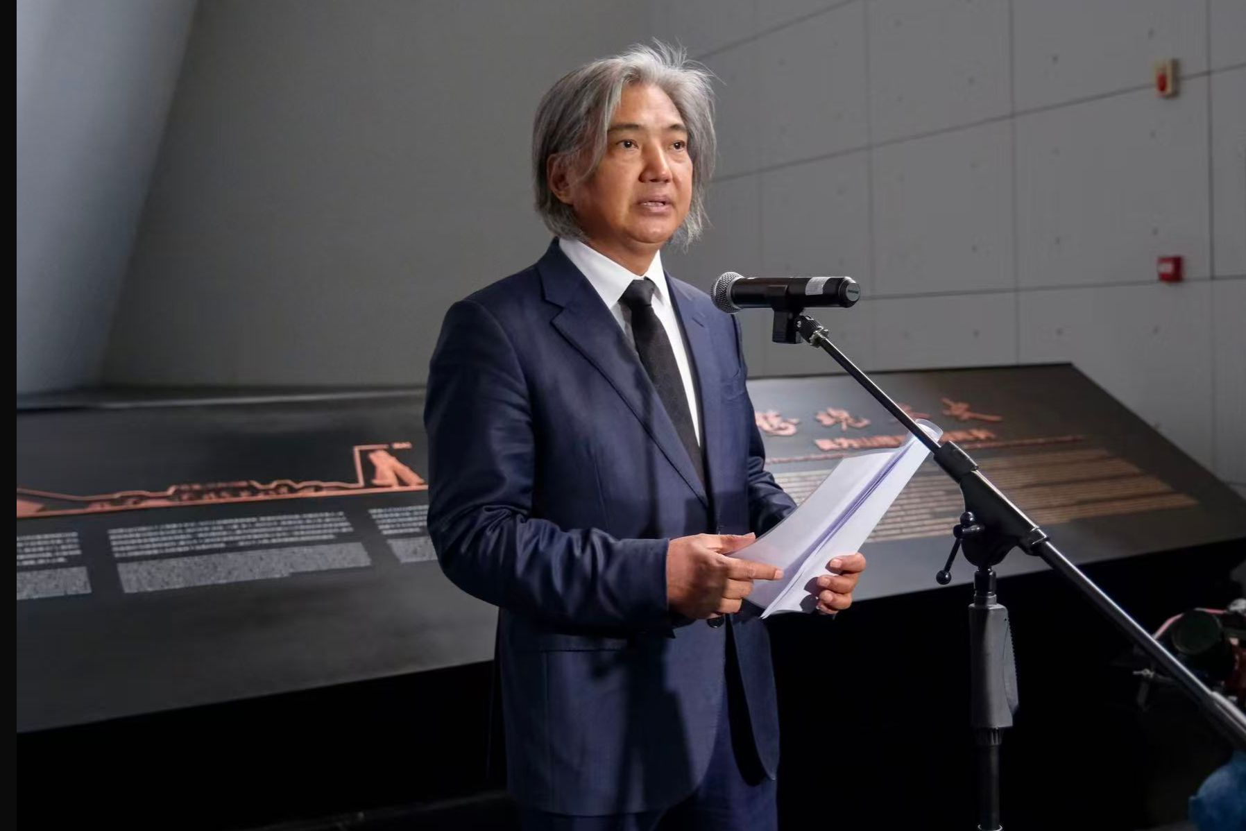 吴为山作为本次陈列的捐赠者与创作者,在致辞中回顾了二十年前受命创作时的心路历程。面对如山的历史资料与照片,他坦言曾“彻夜难眠”。他说:“我想让他们‘活’过来——不是活在恐惧里,而是活在民族的记忆里;让他们‘站’起来——不是站立在废墟上,而是站立在新时代的春风中。”吴为山教授指出,这段血泪历史是对人类文明、和平与良知的深刻叩问。雕塑手稿不仅是艺术的雏形,更是情感的萌发、良知的印记,是“民族苦难的铭刻”。面对历史修正主义与军国主义抬头的阴影,他强调必须保持警醒、奋发而起。这种“愤”是悲愤,更是义愤;“起”是精神的崛起,也是以行动捍卫记忆、抵抗遗忘。最后,他以铿锵之声诵读了创作时心底涌出的诗句:“我以赤子之心,刻下这苦难民族的伤痛……我期盼,古老民族的觉醒——精神的崛起!”言辞之间,充满对历史的敬畏、对遇难同胞的悲悯、对民族精神的呼唤,在场听众无不为之动容。