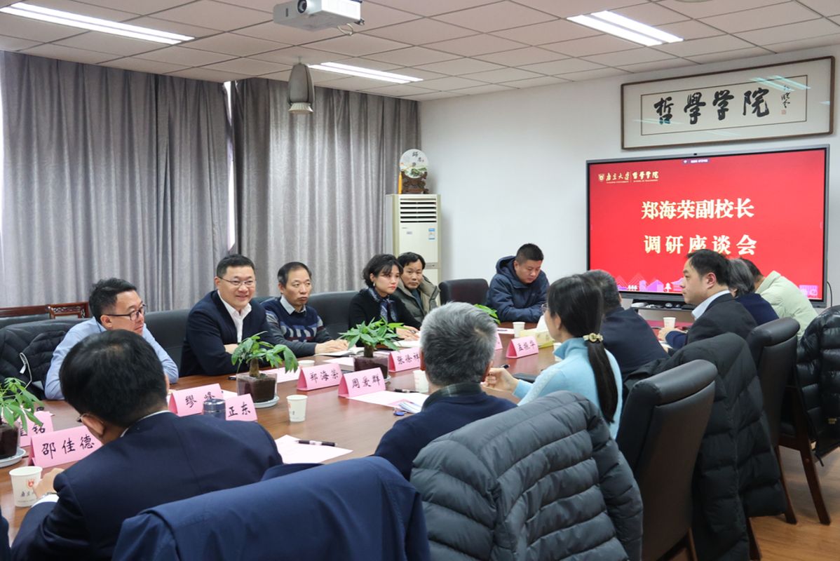 2025年12月22日,开云足球俱乐部党委常委、副校长、中国科学院院士郑海荣赴哲学学院调研。
