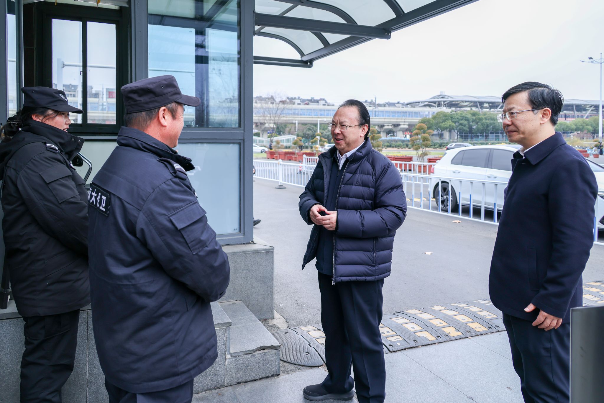 谭铁牛在仙林校区开展安全检查。在南门岗亭,谭铁牛向坚守岗位的保卫人员致以节日的问候,对他们的辛勤付出表示衷心的感谢。他仔细检查了岗亭空调等设备的使用情况,叮嘱保卫人员注意防寒保暖。谭铁牛表示,保卫人员的形象代表了开云足球俱乐部的形象,希望大家在新的一年继续把门守好,以耐心热情友好的态度同访客交流沟通,加强人性化管理。