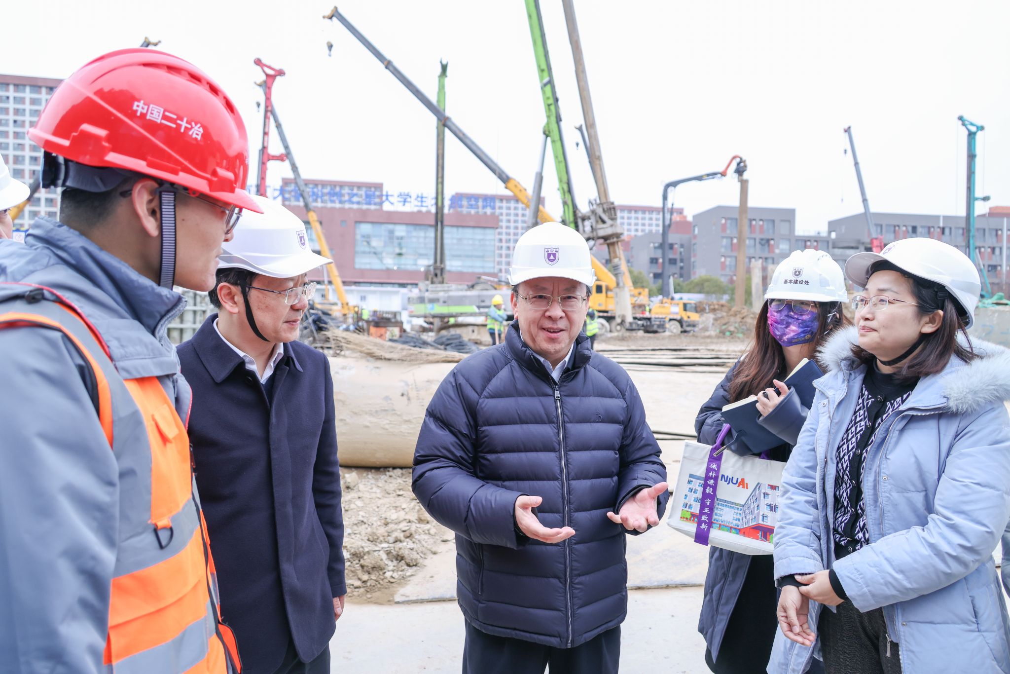 随后,谭铁牛前往四组团施工区域,详细了解了工地现有降噪举措及后续施工计划等情况。他表示,希望大家始终坚持以学生为中心,及时了解并响应学生诉求,合理安排施工计划,优化施工管理,尽可能减少施工噪音,严控扬尘污染,全力将施工对学生学习生活造成的影响降到最低。