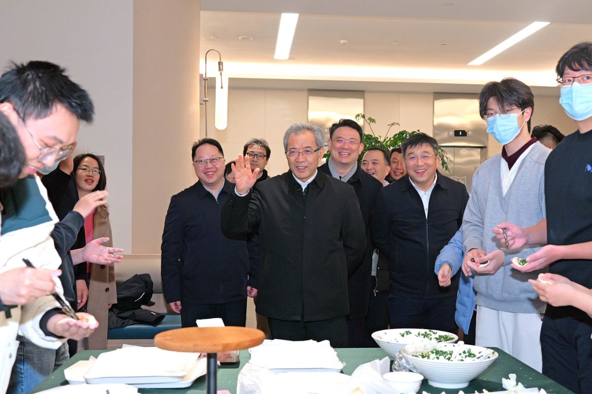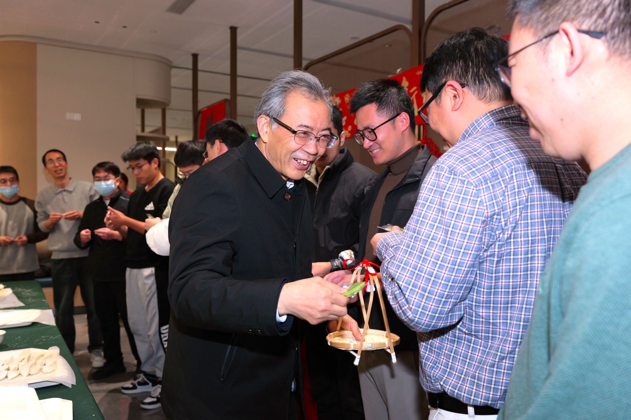 十八食堂正举办一场温馨的“迎新年、包饺子”师生活动,谈哲敏与师生们共话家常、畅想新年,并为大家送上新年“福袋”,祝福大家在新的一年里工作顺利、学习进步。