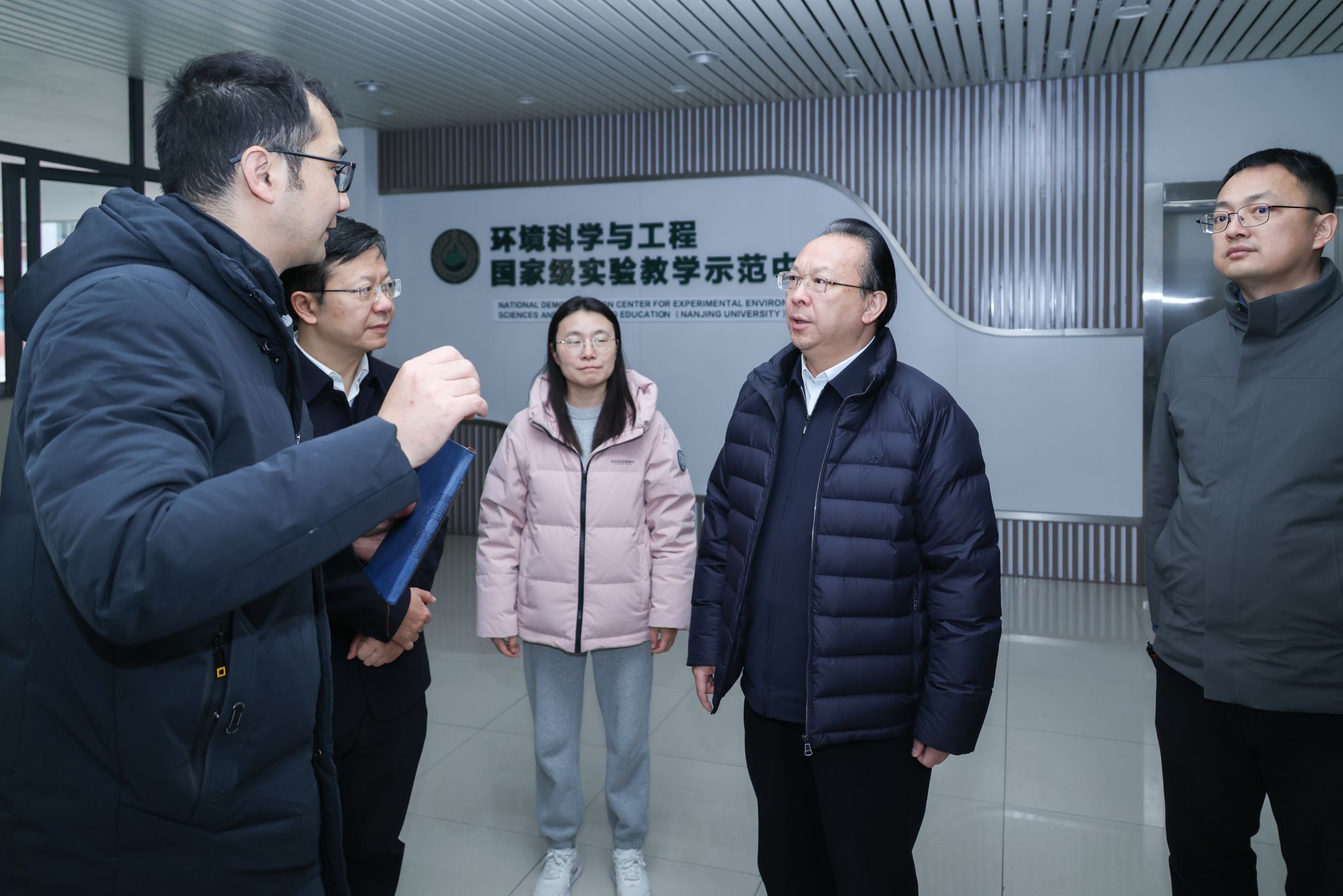 在环境学院,谭铁牛走访调研了学院的危化品管理情况。他指出,要加强对危化品的监控管理,与学校保卫处的远程监控系统实时对接,通过人工智能视频分析等技术创新提高预警能力,坚决防范各类风险,杜绝安全隐患,确保安全无死角、无漏洞。