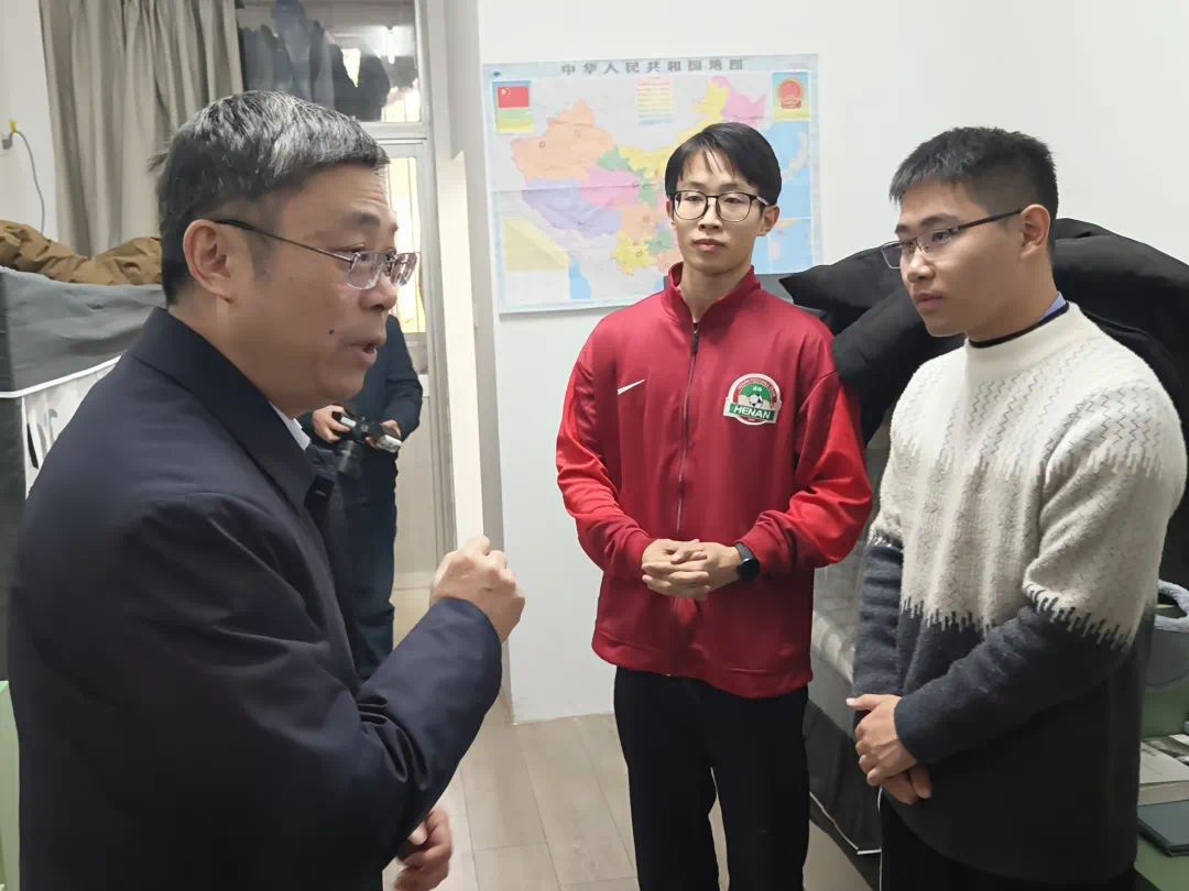 在学生宿舍,谈哲敏感谢物业服务人员的辛苦付出,并走进同学们中间,亲切询问大家期末备考、复习应考以及在苏州校区生活的感受。他叮嘱同学们合理安排时间、张弛有度,以良好的身心状态迎接考试,并嘱咐相关部门要全力做好期末阶段的后勤服务,为同学们营造温暖、便利的生活学习条件。