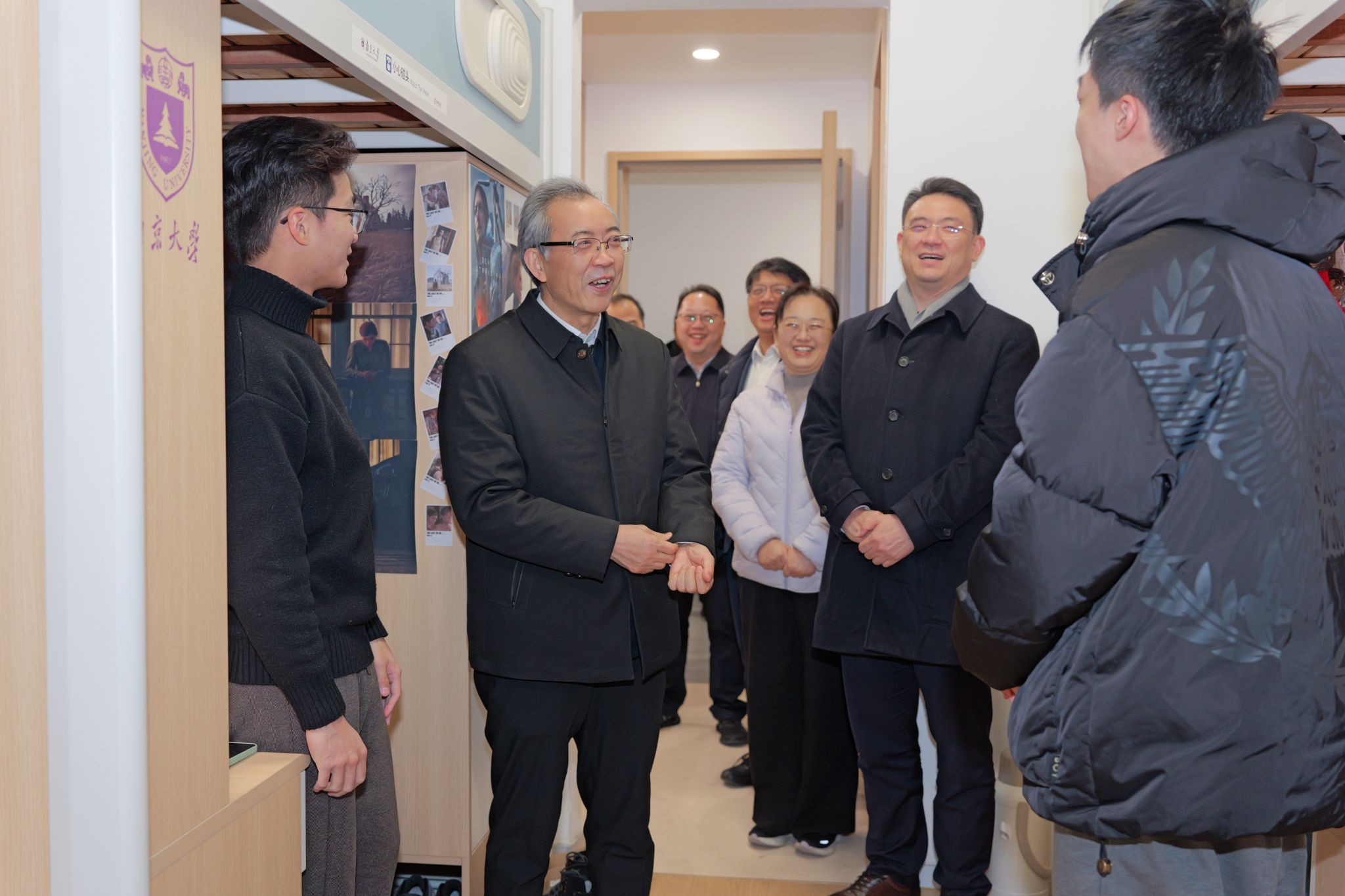 副校长、浦口校区管委会主任陆延青带队在浦口校区开展安全检查并慰问师生员工。在浦口校区1号门,陆延青向保安队员致以诚挚谢意和节日问候,深入了解校门进出管理、安保值班制度并提出具体要求。在学生宿舍,陆延青与同学们亲切交流,询问学业进展、生活保障等情况,希望大家充分利用学校优质资源,早日成长为面向时代需求的复合型拔尖创新人才。在新建及改造项目现场,陆延青听取了2026年浦口校区推动转型发展和实施更新改造工程的具体汇报,提醒有关部门加强安全管理和过程监督。在第十五食堂,陆延青强调要在保障膳食供应及安全卫生的同时,发扬学校人文关怀传统,持续做好“深夜食堂”“1分钱早餐”等暖心服务。在校医院,陆延青向医护人员表示感谢和慰问,关切询问了师生就诊和自动体外除颤器(AED)校园分布等情况,要求加强对师生的应急救护培训。在校区保卫办,监控设施正在全面实时反映校园动态,陆延青表示要紧密结合人防技防物防,共同维护好校园安全稳定。在图书馆,陆延青询问同学对馆藏资源与服务的具体需求,提出要进一步优化图书资源、增强读者体验,满足多元需求、打造书香校园。有关单位负责人陪同走访。