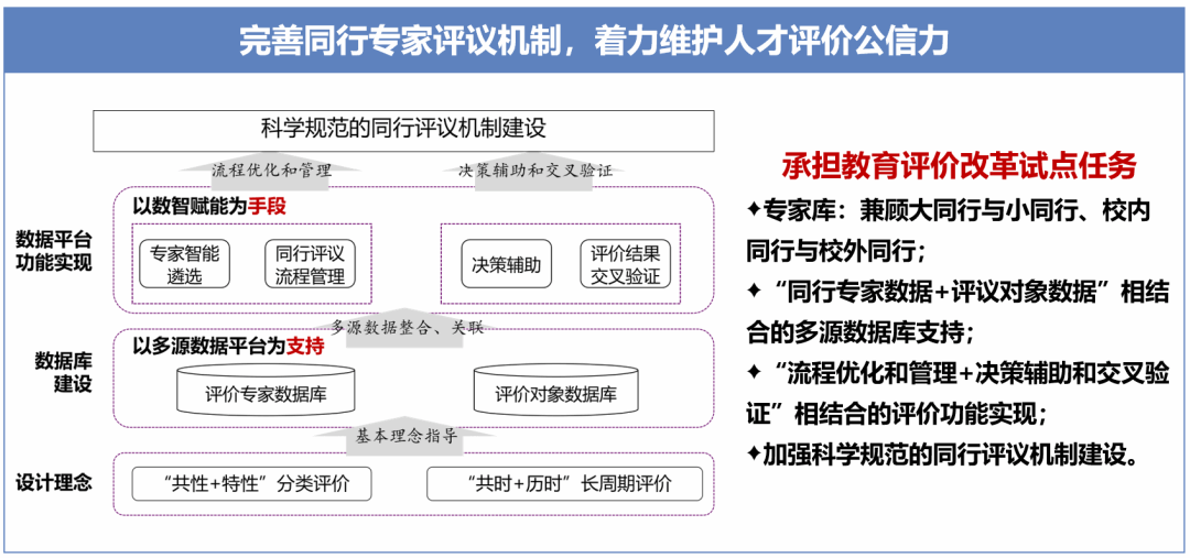 深化分类评价改革,充分尊重学科与人才成长规律;实行代表性成果评价制度,牢固树立质量与贡献导向;完善同行专家评议机制,着力维护人才评价公信力。以质量为核心、以分类为基础、以学术为主体,以长远为视野回应时代之需,构建更加科学、更加公正、更富弹性的评价系统。