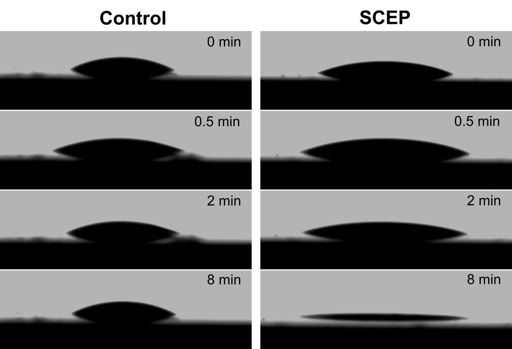 这是钙钛矿溶液落到基底上以后,半分钟、2分钟、8分钟的状态示意图。右边一列显示经“溶剂限制边缘保护”策略优化的挥发状态,钙钛矿薄膜与基底接触面积更大、质量更好。(南京大学供图)