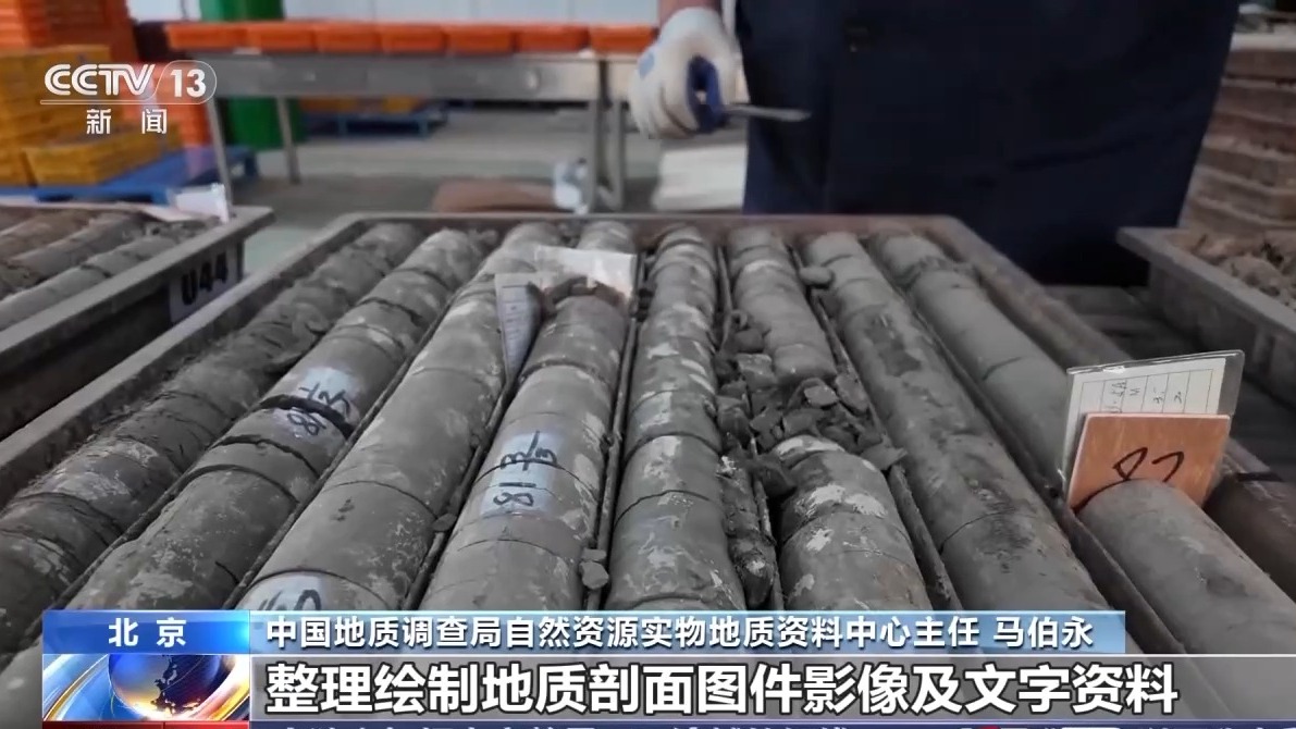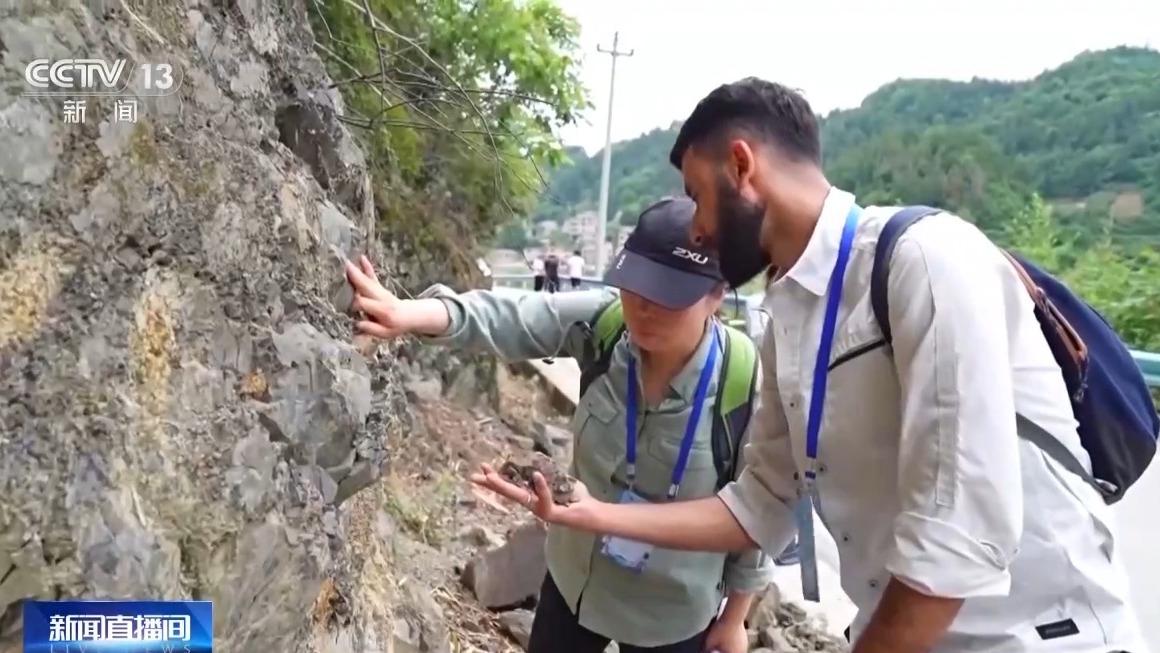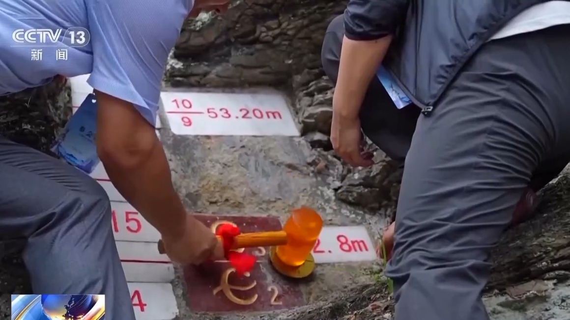 中国地质调查局自然资源实物地质资料中心主任马伯永:这就是“金钉子”的标准地层剖面,其中这个红线就是地层的一个界线。目前的工作包括开展野外地层剖面数字影像采集,系统采集岩石古生物化石标本,保存关键的地层证据,建立地层层序,整理绘制地质剖面图件影像及文字资料,构建完整的资料体系,实现对“金钉子”剖面的科学系统与永久性的保存。
