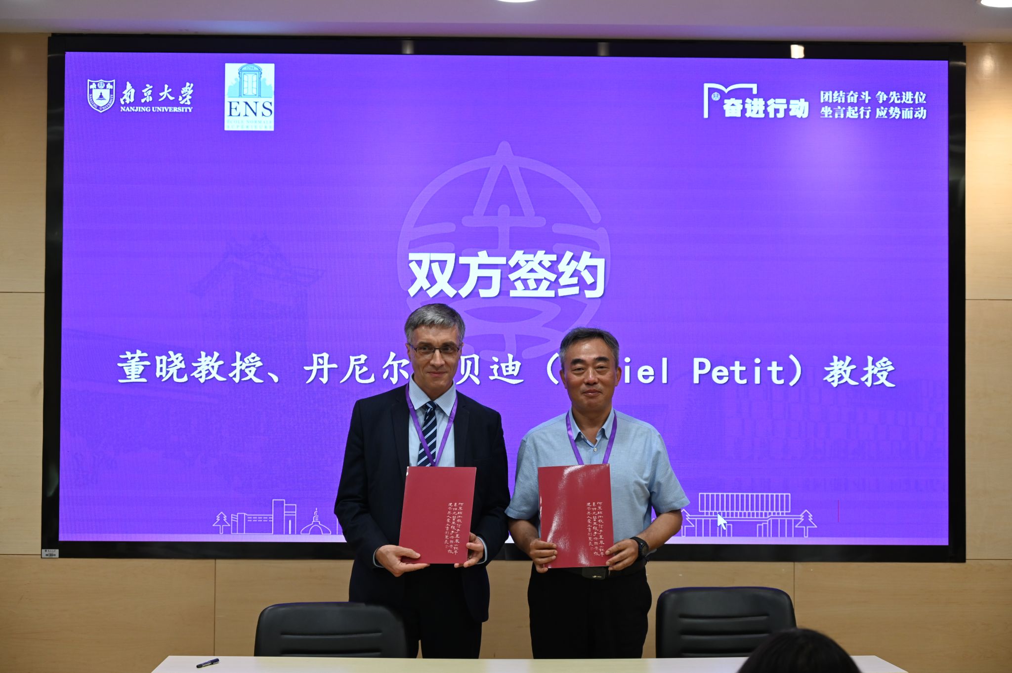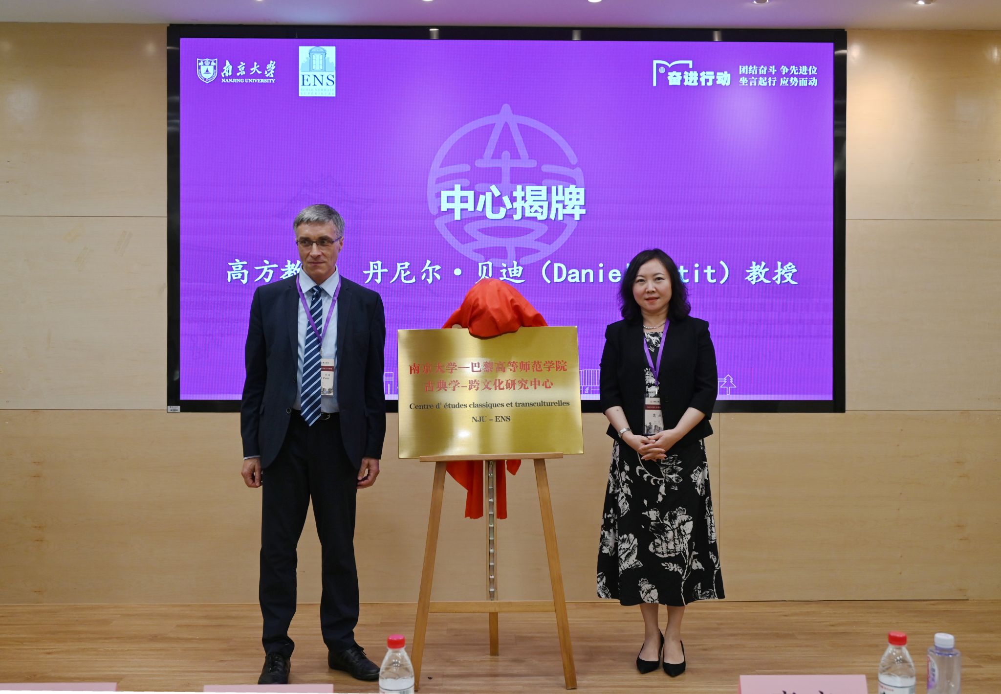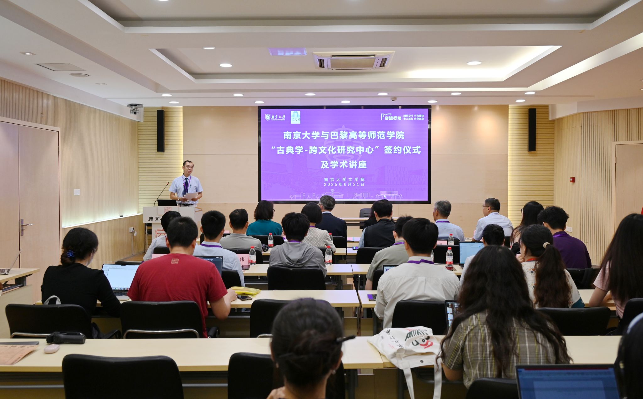 6月21日,南京大学与巴黎高等师范学院“古典学—跨文化研究中心”签约仪式及学术讲座在南京举行。活动中,南京大学文学院院长董晓和巴黎高等师范学院古典学系教授丹尼尔·贝迪(Daniel Petit)签署合作协议。南京大学社会科学处处长高方和丹尼尔·贝迪共同为南京大学与巴黎高等师范学院“古典学—跨文化研究中心”揭牌。