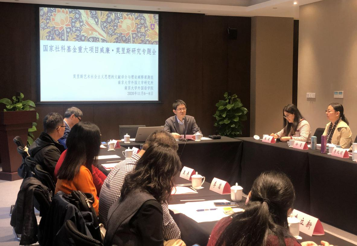 2020年11月7-8日,由莫里斯艺术社会主义思想的文献译介与理论阐释课题组主办,南京大学外国文学研究所、南京大学外国语学院承办的国家社科基金重大项目威廉·莫里斯研究专题会在宁举行。来自南京大学、山东大学、郑州大学、北京师范大学、杭州师范大学、中国矿业大学、湖南师范大学、东北大学等数十所高校的50余位专家学者参加了此次专题会。会议回顾总结了过往一年的项目进展情况,进一步明确译文推进和子课题书稿计划,瞄准具有高品位、高标准、高水平的研究目标。